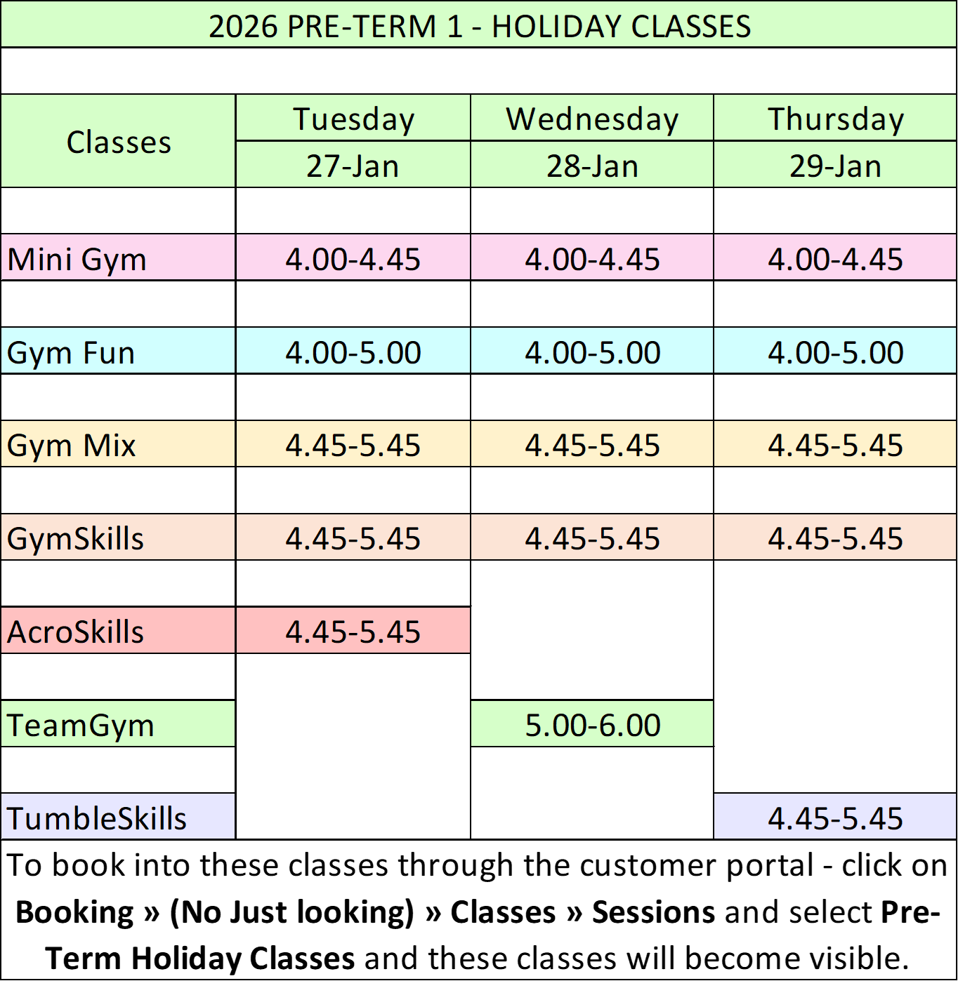PRE-TERM HOLIDAY CLASSES JAN 2026 - BOOKING INSTRUCTIONS….