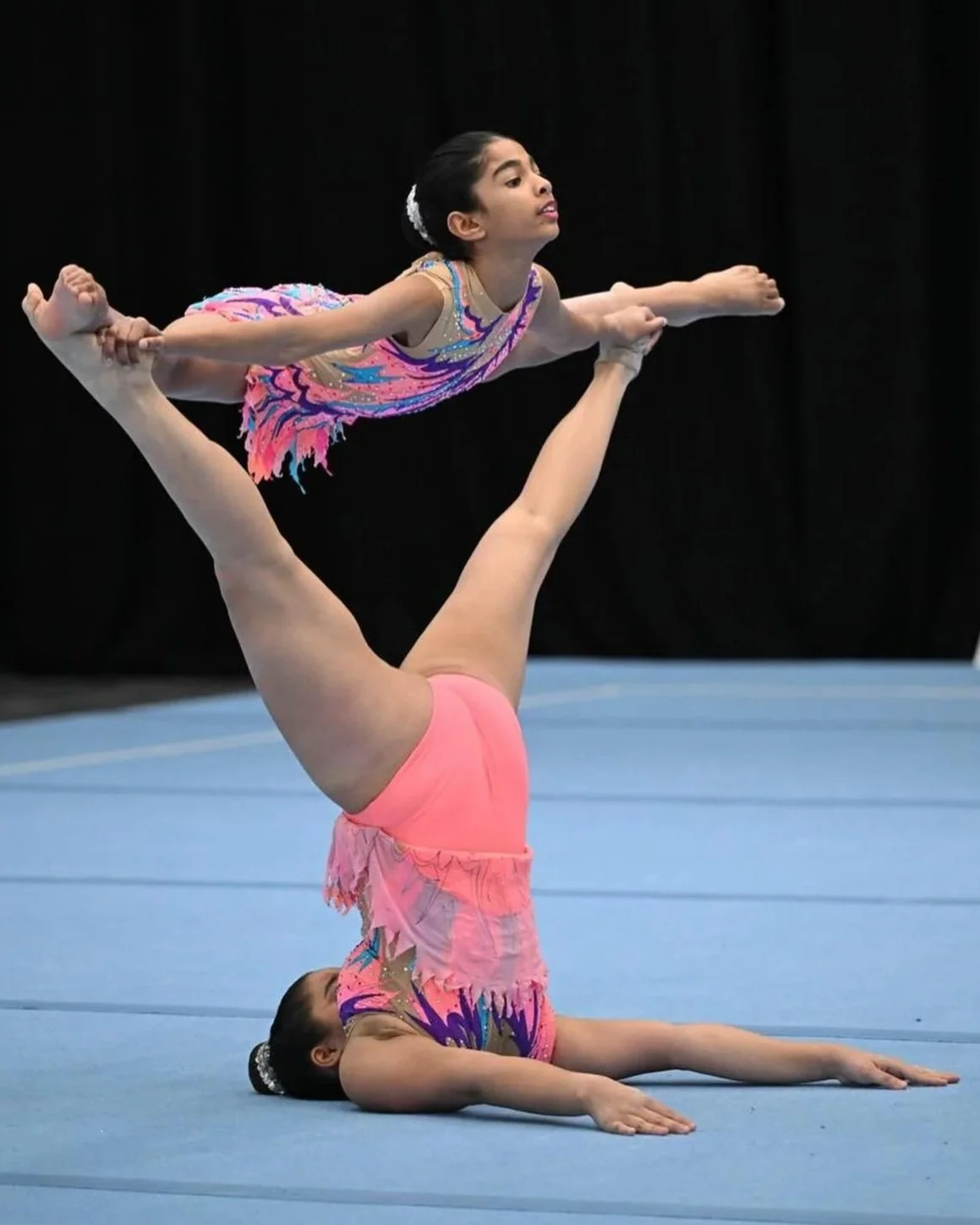 Acrobatic Gymnastics Squad or “Acro” is a competitive team of athletes. We have a Youth Squad which competes in Level 1 and 2. A Junior Squad which competes in Levels 3, 4, and 5. We also have a Senior Squad which competes in Levels 7 to 10 and International Levels. Most students will participate in Team-Gym or Development programs prior to joining the squads. However experience athletes and Acrobatics should contact management for suitability. Acro students compete in Pairs and Trios, train between 2 and 5 days per week and competes in competitions Regionally, Statewide, Interstate and Internationally (depending on their level).